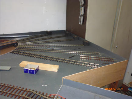 October 2021 and attention moves to the loco yard at the far side of the boards. Installation of the turntableis underway.