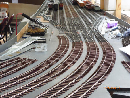 October 2021 and attention moves to the loco yard at the far side of the boards. Installation of the turntableis underway.